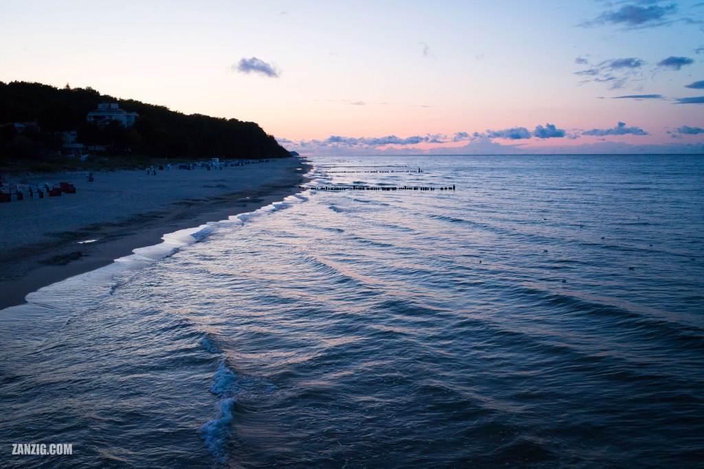 AUGUST 2019 – After sunset the waves of the Baltic Sea roll gently towards the beach of Bansin, Germany. Photo © by Mark Zanzig/zanzig.com