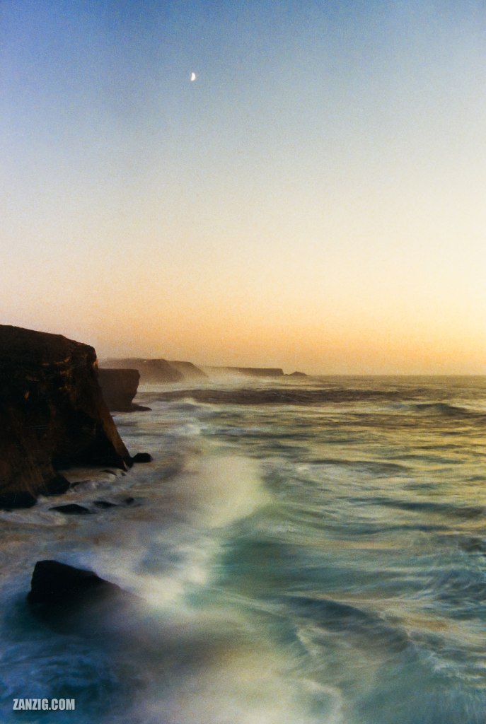 My 1988 trip to Portugal lasted for six weeks, and it was probably one of my best vacations, ever. When we stayed at the Atlantic Coast, one evening I wanted to capture the coastline in a couple of looong exposures. So we drove to a spot that would offer a beautiful view across the cliffs and tried various exposure times. It was all analog back then, and negatives, because I had not yet switched to slide film.