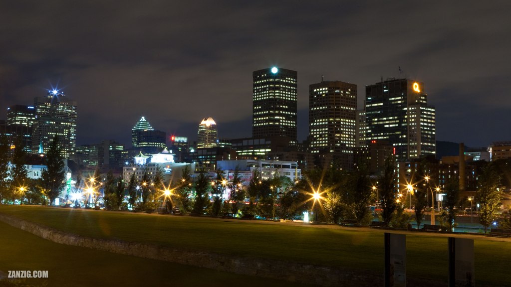 JULY 2009 – The skyline of Montreal, Quebec, Canada, at night, photographed from the Park du Champ-de-Mars. Photo © Mark Zanzig/zanzig.com