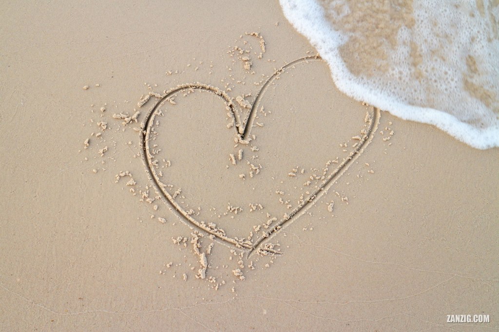 AUGUST 2019 – A handdrawn heart in the beach is about to be washed away by a tiny wave that rolls onto the beach. © Mark Zanzig/zanzig.com