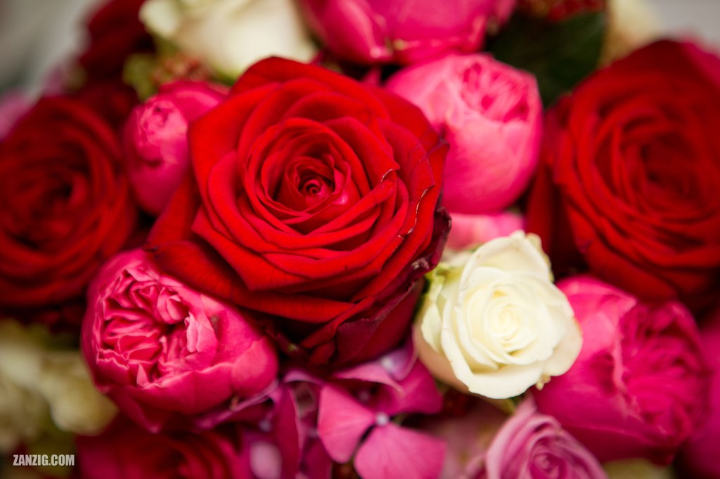 SEPTEMBER 2014 – A gorgeous flower bouquet with red, pink and white roses. Photo Copyright © by Mark Zanzig/zanzig.com