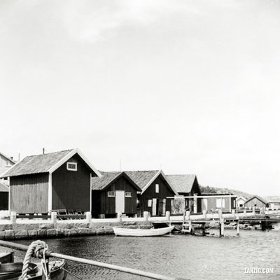 SUMMER 1954 – The harbor of Bohus-Malmön in Sweden on a sunny day. Scan © Mark Zanzig/zanzig.com