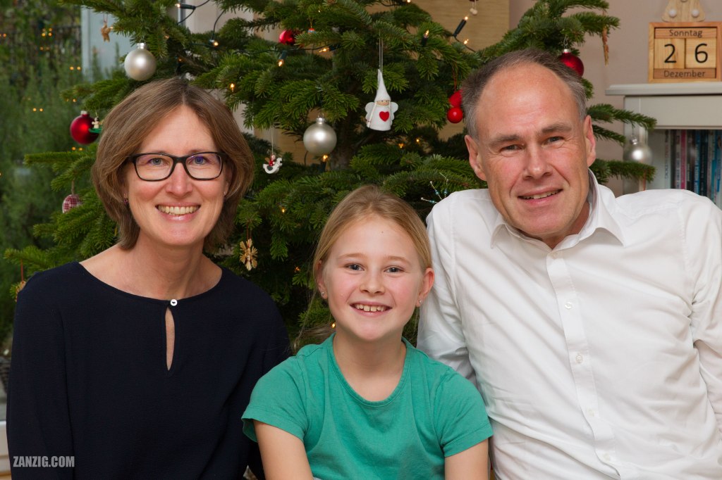 DECEMBER 2021 – Petra, Clara, and Mark Zanzig pose for a selfie in front of their Christmas tree. © Mark Zanzig/zanzig.com