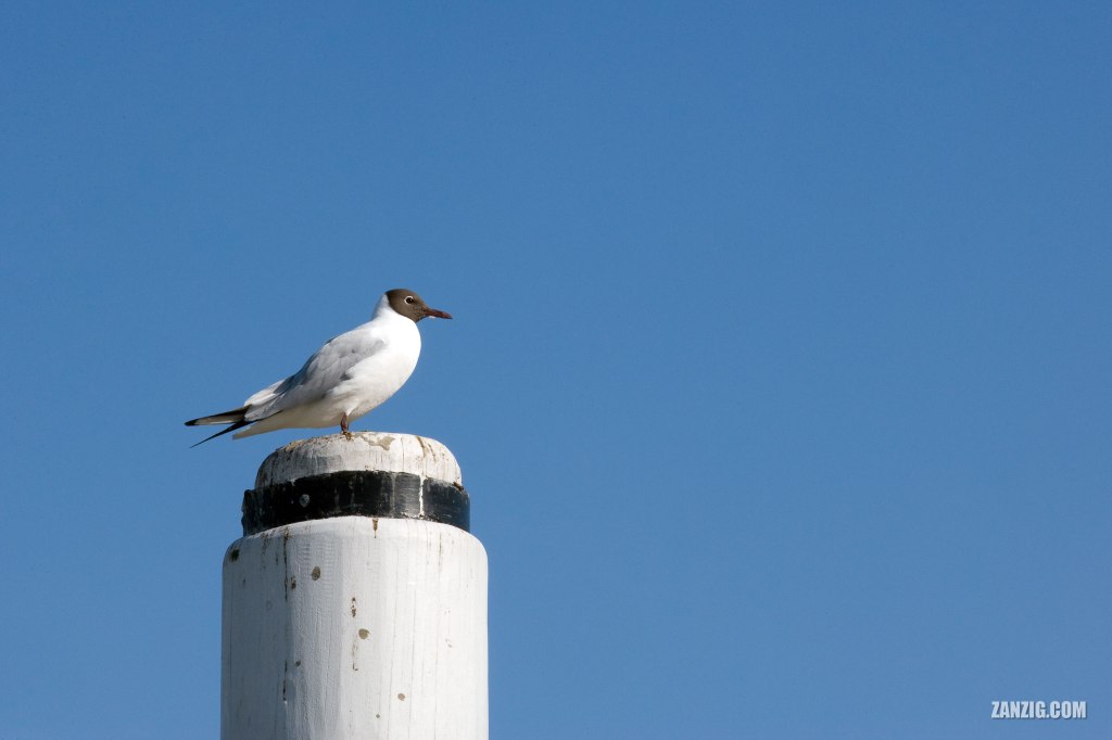 MARCH 2007 – A seagull rests on a pole at the harbor of Büsum, Germany. Photo © Mark Zanzig/zanzig.com