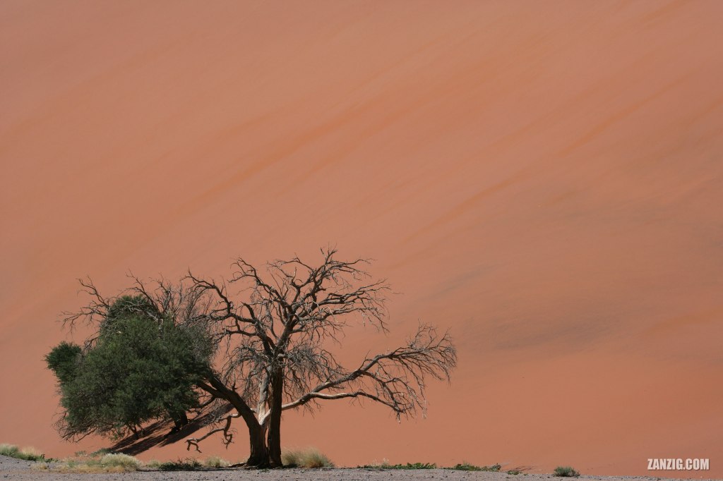 DECEMBER 2006 – Tree against the red sand of Dune 45 at the Namib-Naukluft National Park in Namibia. Photo © Mark Zanzig/zanzig.com