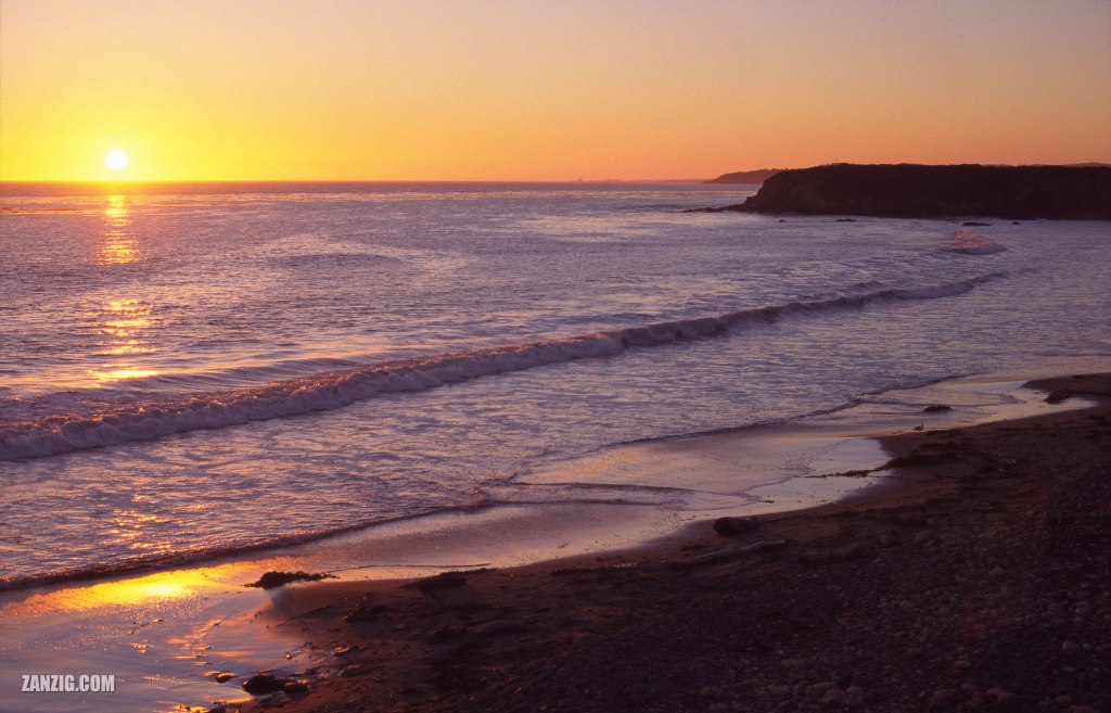 SEPTEMBER 2003 – Sunset at the beach of San Simeon, California. Photo © by Mark Zanzig/zanzig.com