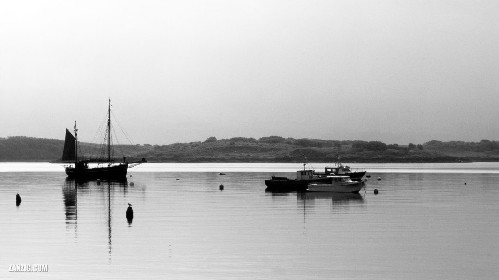 The harbour of Tobermory on the Isle of Mull provides many nice views, also in the morning. When we left Tobermory, the sky was gray from the upcoming rain, but the mirror-like sea added to the very special mood of this morning photo of boats that have been anchored outside the main harbour of the town.