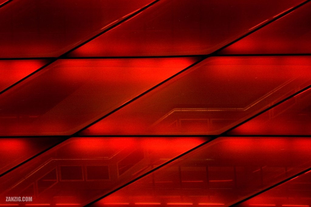 Anyway, I like this shot so much because of the red dominance and the fact that the transparency reveals some details of the interior (but not all). It is as if the curtain of a stage if lifted just a little. Despite the simplicity of the photo it is challenging to identity what you’re actually looking at. After all, it’s a rare sight. (Here, you can see the huge stairs that lead up inside the stadium, giving a hint of the huge size of the building.)