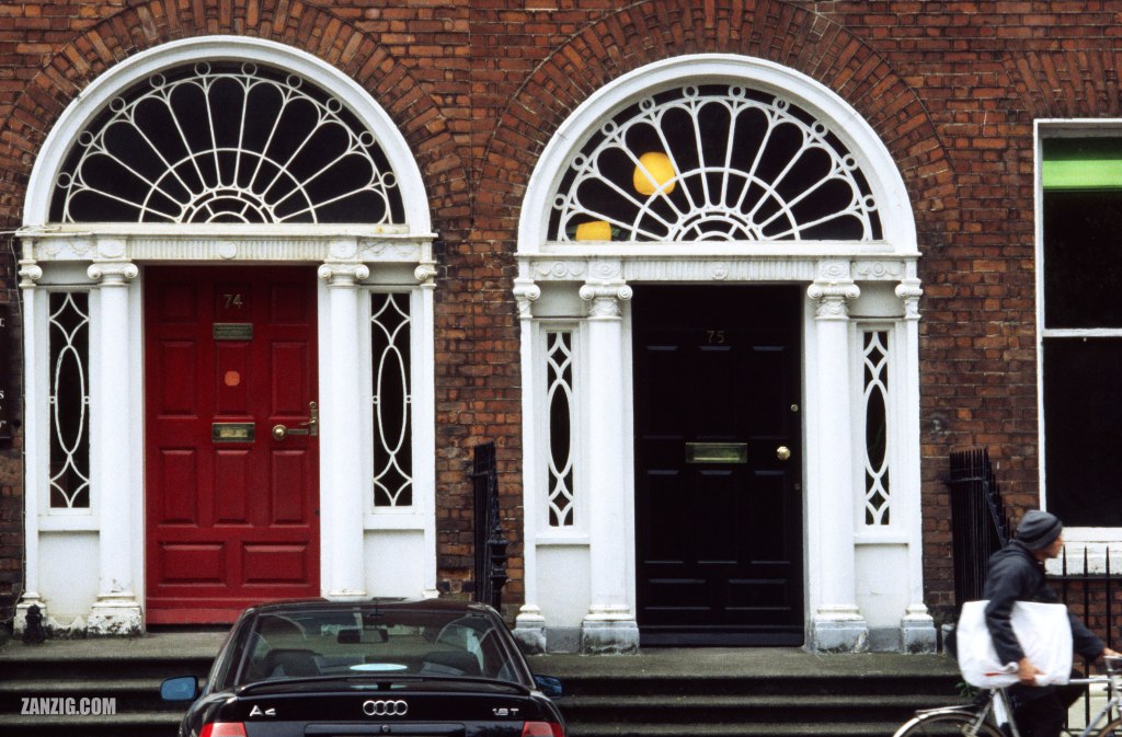 This is also expressed by the beautiful Georgian entrances that feature many houses in Dublin. Usually, you’d be directed to St. Stephen’s Green to capture one or two of these. I found these stunning doors at 74-75 Merrion Square South. I was fortunate that a guy passed with his bicycle, adding a bit of activity to the image. Same is true for the Audi that has been parked in front of the building.