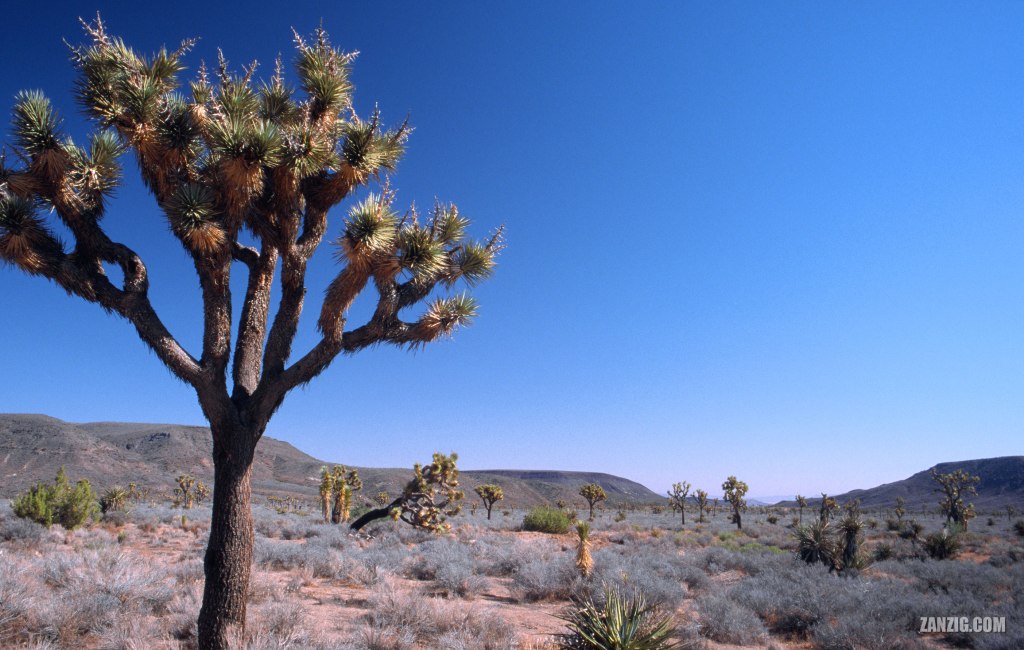 SEPTEMBER 2003 – A Joshua Tree (Yucca brevifolia) stands in the barren steppe of the Joshua Tree National Park in California, USA. © Mark Zanzig/zanzig.com