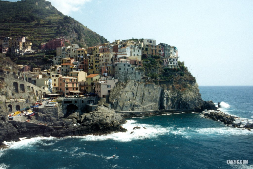 AUGUST 2000 – View across Manarola a village that is part of the famous coastal stretch called ‘Cinque Terre’ in Northern Italy. © Mark Zanzig/zanzig.com