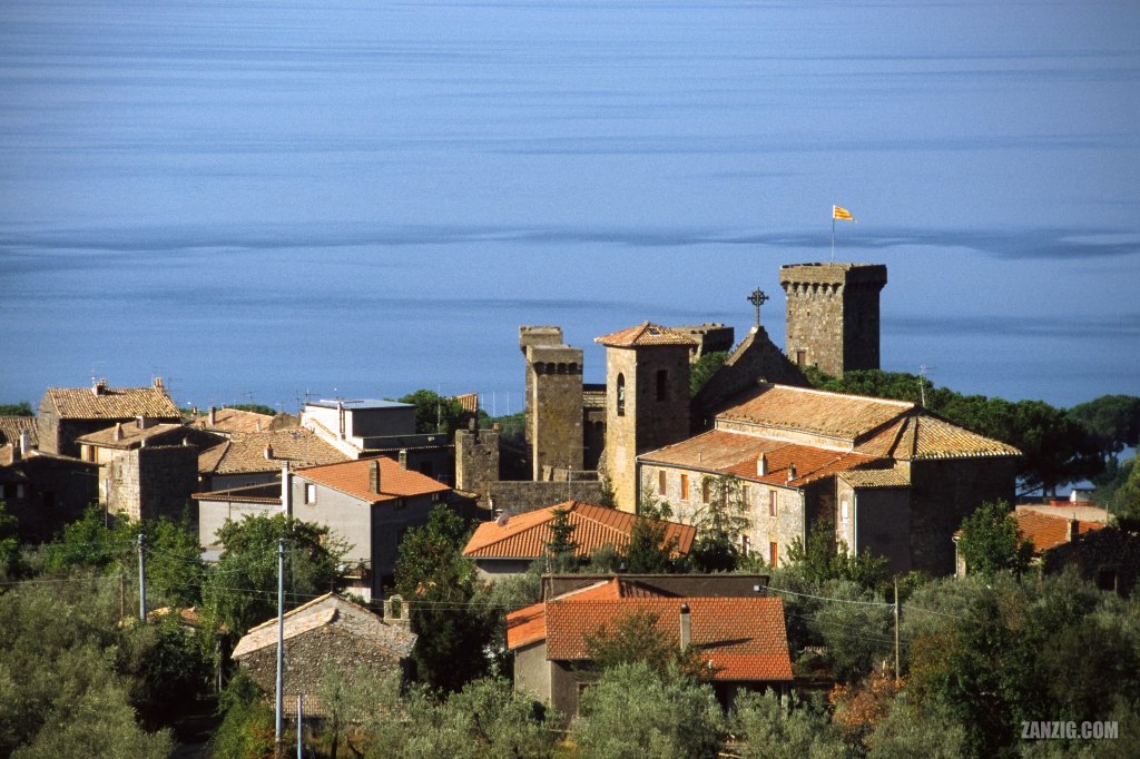 SEPTEMBER 2000 – View across Bolsena in Italy, with the Chiesa di San Salvatore in the front and the Rocca Monaldeschi della Cervara in the back. © Mark Zanzig/zanzig.com