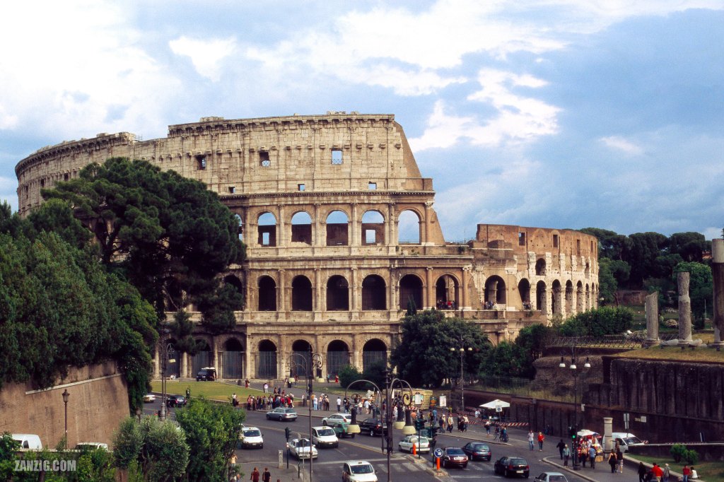 JUNE 2005 – The front of the Colosseum in Rome, Italy, seen from Via dei Fori Imperali. © Mark Zanzig/zanzig.com