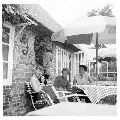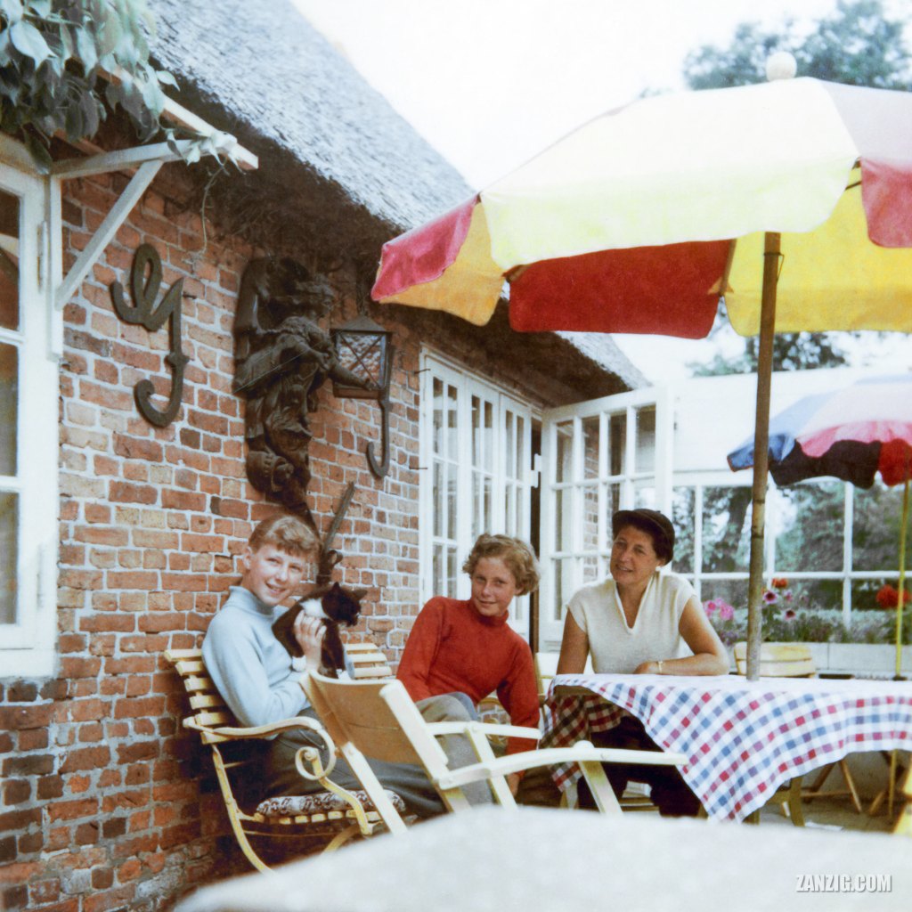 SUMMER 1956 – Edith Schweim with her daughters Inga (left) and Editha (middle) on the patio of a café in Schleswig-Holstein, Germany. © Mark Zanzig/zanzig.com