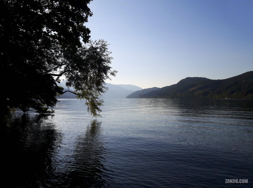 AUGUST 2022 – A tree hangs one of its branches over the calm water of the Millstätter See in Austria on a clear morning shortly after sunrise. Photo © Mark Zanzig/zanzig.com