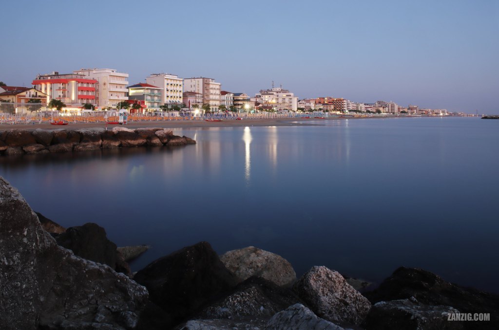 While waiting for the sunrise I shot a long exposure along the beach of Bellaria near Rimini in Italy. I reduced ISO to 100 and opted for an aperture of f/16 to get to the desired 32 seconds exposure time. I steadied the camera on the nearby rocks and then happily did a couple of shots.