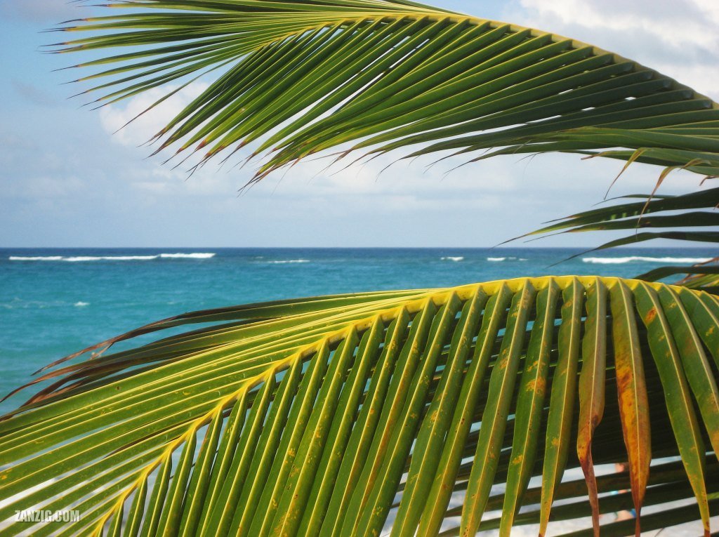 DECEMBER 2007 – The horizon of the Atlantic Ocean is framed by the green leafs of a palm tree at a beach near Punta Cana in the Dominican Republic. © Mark Zanzig/zanzig.com
