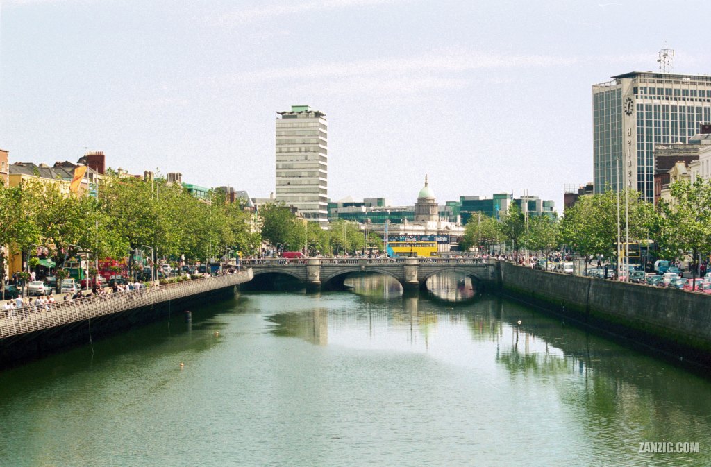 2003 – The River Liffey on a sunny summer day, seen from the Ha’penny Bridge in Dublin, Ireland. Photo © by Mark Zanzig/zanzig.com
