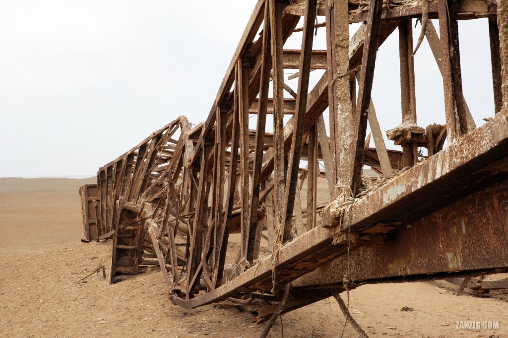 DECEMBER 2006 – The rusty ruins of an old oil drilling rig next to Highway C34 in the Skeleton Coast National Park, Namibia. © Mark Zanzig/zanzig.com