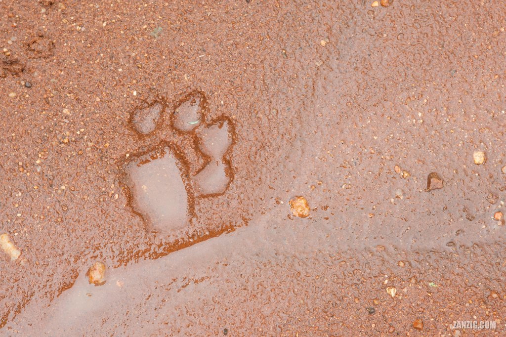 NOVEMBER 2011 – A fresh footprint of a lion at the Bushwise private game reserve in South Africa. © Mark Zanzig/zanzig.com