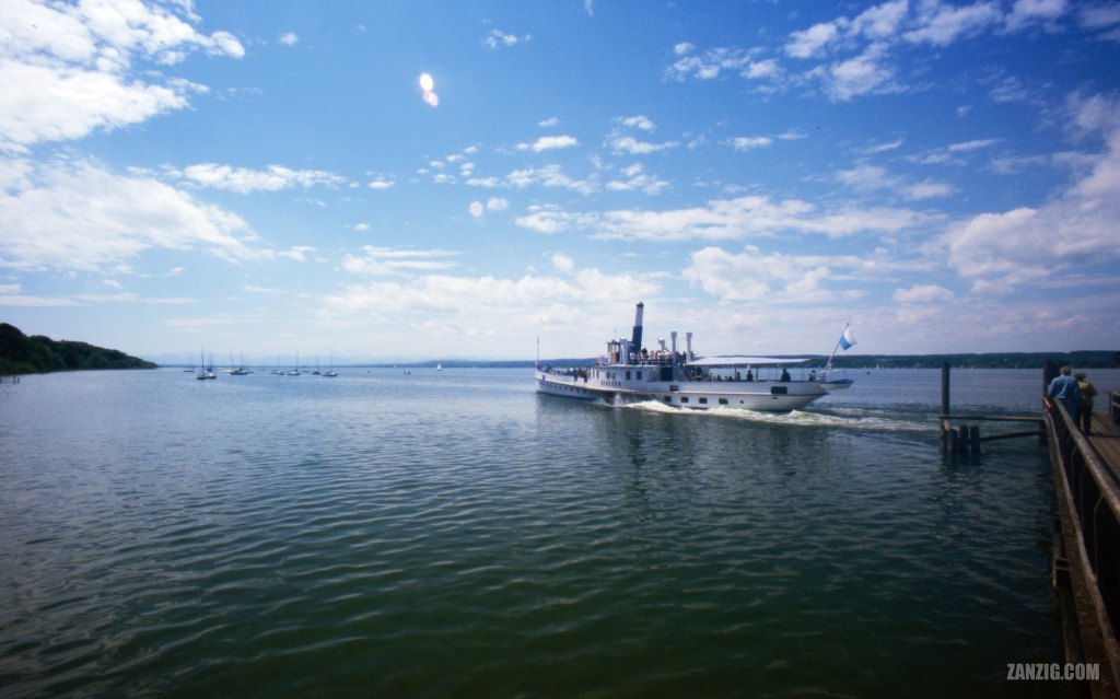 1999 – The steamboat Diessen leaves the pier at Herrsching for a cruise on Lake Ammersee in Bavaria. Photo © Mark Zanzig/zanzig.com