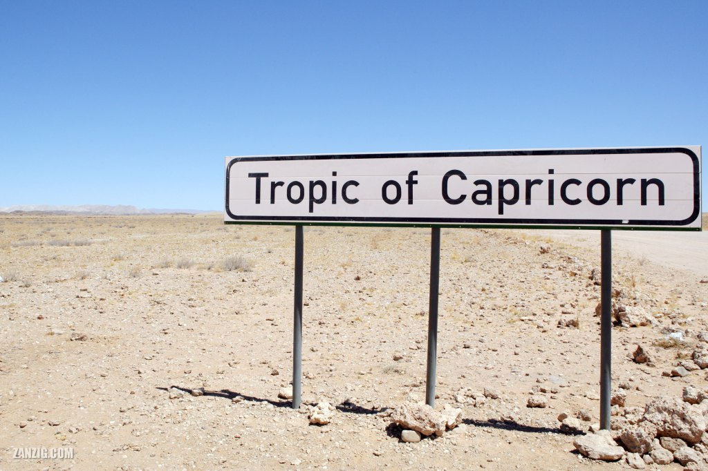 Yesterday I posted an image of the Tropic of Capricorn point at the Kruger National Park in South Africa, pointing out that we had already crossed the Tropic of Capricorn, in 2006 on Namibia’s C14 highway.