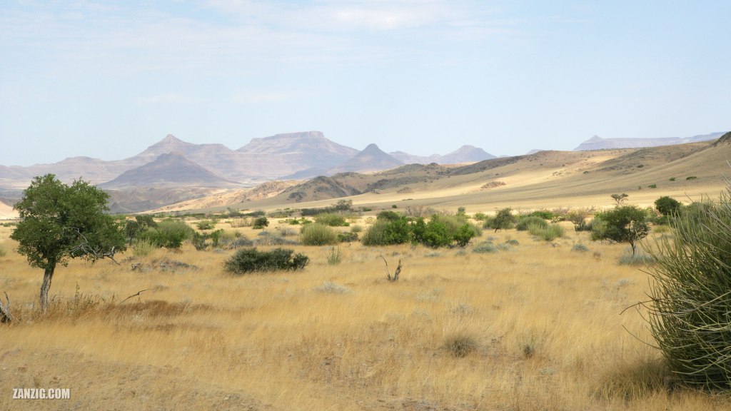 DECEMBER 2006 – Mountains rise gently from the dry grasveld soil in a landscape view captured along the C39 between Twyfelfontein and Bergsig in Namibia. © Mark Zanzig/zanzig.com