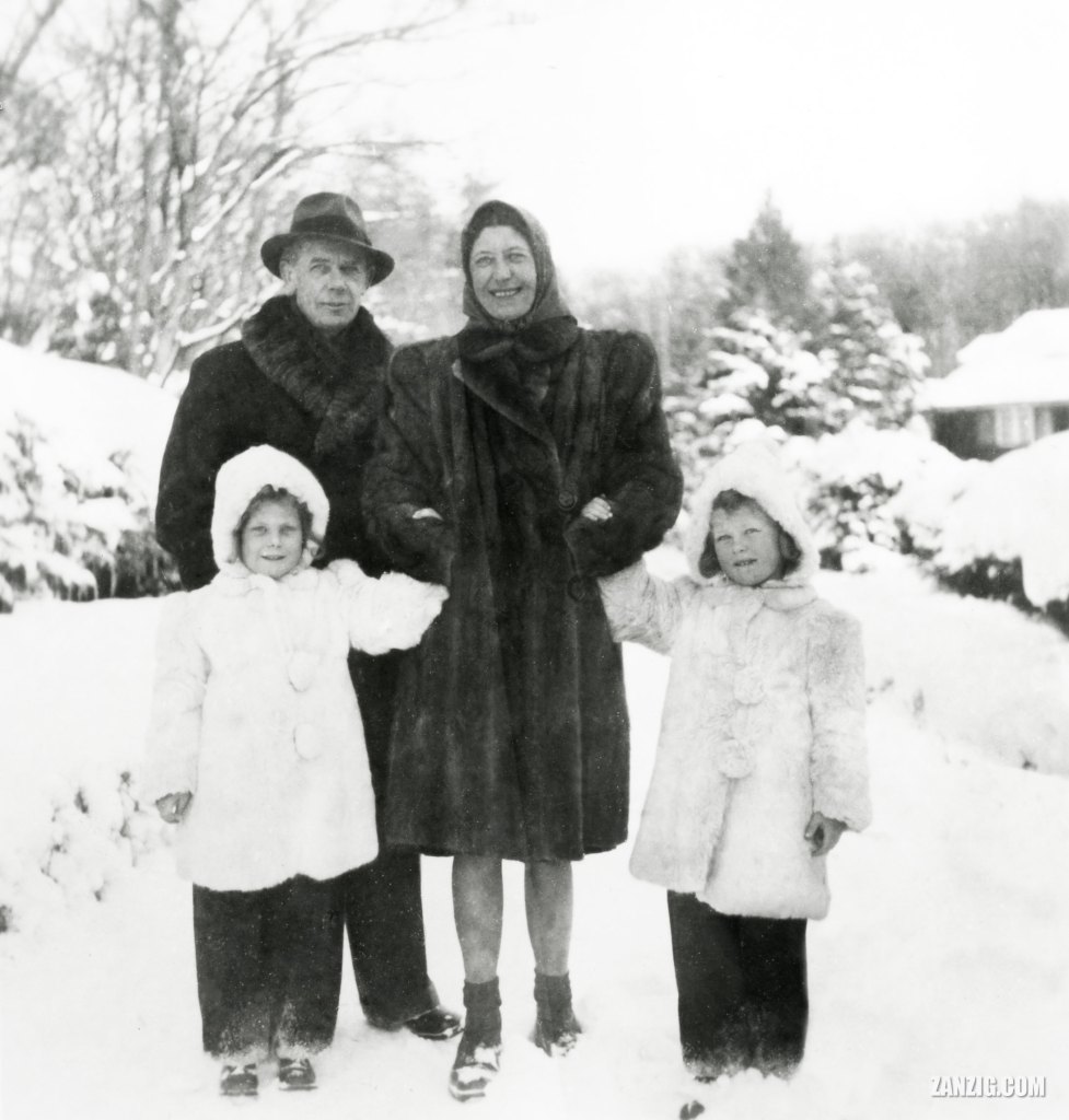 JANUARY 1947 – After heavy snowfalls, the Schweim family poses for the photographer in the deep snow of Malente-Gremsmühlen, Germany. Scan © Mark Zanzig/zanzig.com