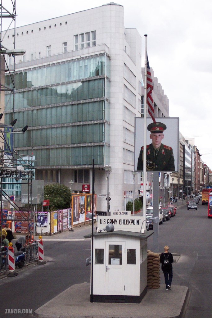 The other day I stumbled upon this photo from 2001 showing the former border crossing between West and East Berlin that became world famous as Checkpoint Charlie. (The official page by Berlin Tourism has more details.)