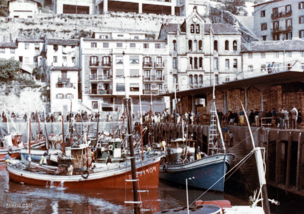 It’s one of those early color prints in our family archive, taken during a trip to Spain in 1957. The relatives stopped in San Sebastian close to the Spanish-French border and its harbor. Apparently, the harbor was pretty busy that morning. Boats were coming unloading their catch and leaving once done.