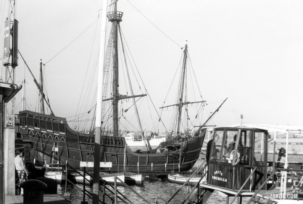 MARCH 1957 – A replica of the historic ship Santa Maria at the port of Barcelona, Spain. © Mark Zanzig/zanzig.com