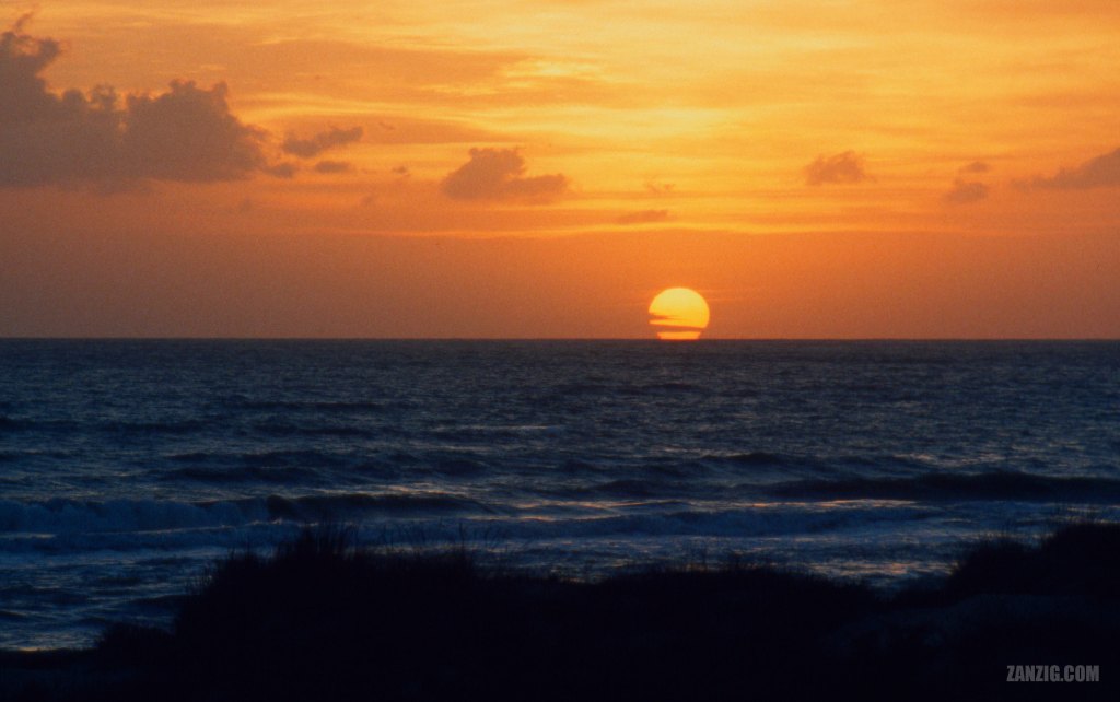 SEPTEMBER 2000 – Sunset at Spiaggia Libera Lungomare Di Sabaudia, Italy. © Mark Zanzig/zanzig.com