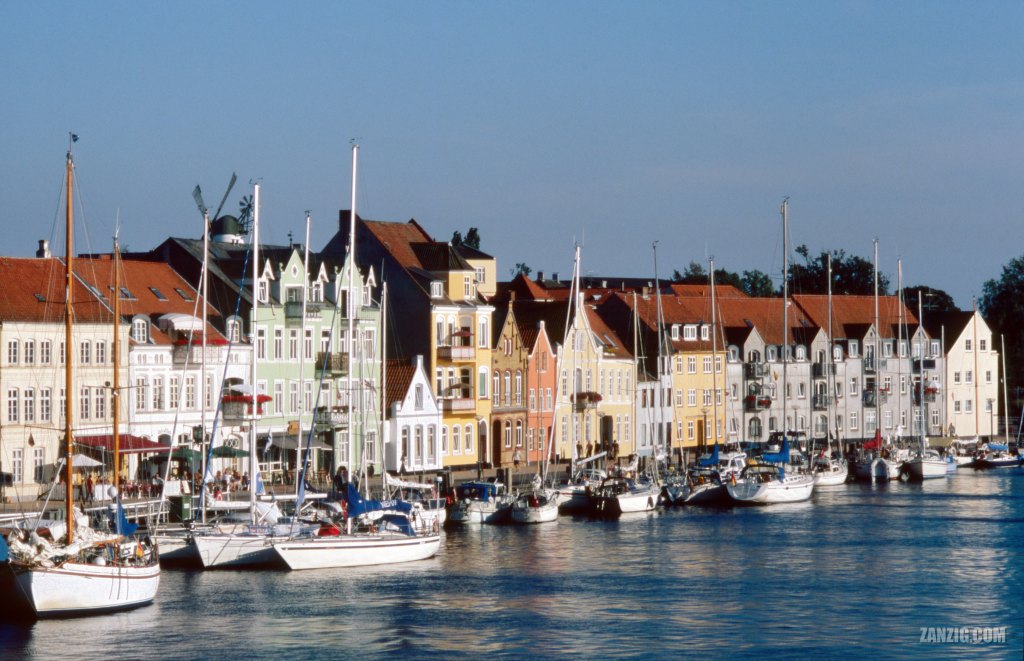 AUGUST 2004 – Several sailing yachts have been moored along the Sønder Havnegade with its historic buildings in Sønderborg, Denmark. Photo © Mark Zanzig/zanzig.com