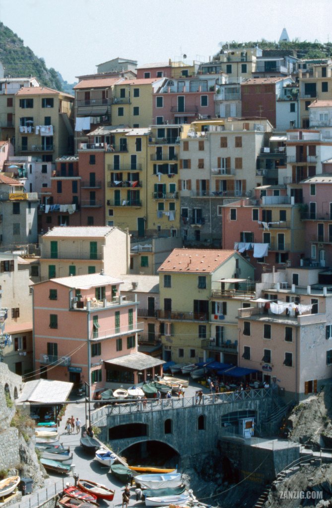 AUGUST 2000 – View of the town center of Manarola, a village that is part of the famous coastal stretch called ‘Cinque Terre’ in Northern Italy. © Mark Zanzig/zanzig.com