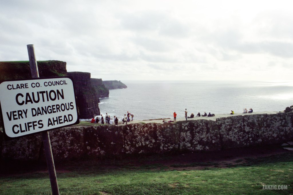 SEPTEMBER 1999 – A simple sign warns visitors of the very dangerous cliffs of Moher in County Clare, Ireland. Photo © by Mark Zanzig/zanzig.com