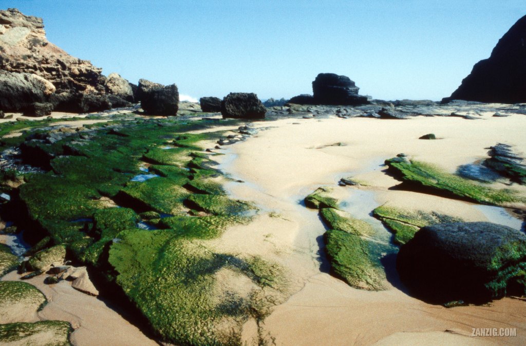 1995 – Rocks that have been colored green from algae at the Praia do Castelejo at the west coast of Algarve in Portugal. © Mark Zanzig/zanzig.com