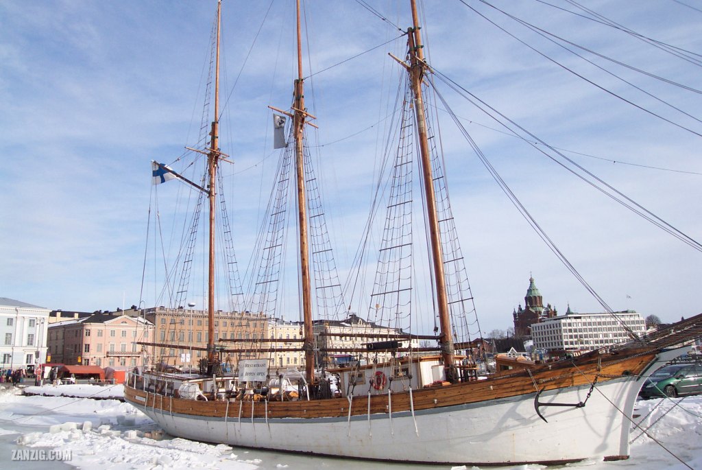 FEBRUARY 2003 – A three mast ship with a restaurant has entirely frozen at the harbour of Helsinki, Finland. © Mark Zanzig/zanzig.com