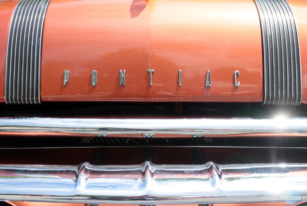JULY 2016 – The front of a classic 1955 Pontiac Star Chief shines in bright brown and orange tones at a historic car show in Taufkirchen, Germany. Photo © Mark Zanzig/zanzig.com