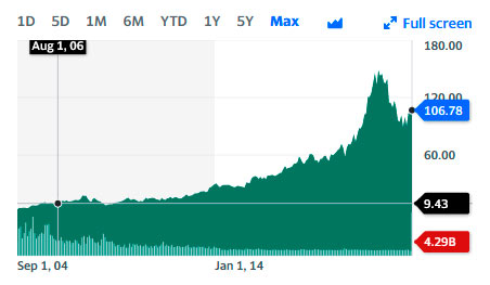 It’s interesting to see the Google chart as of 20/07/2006. The stock price has increased 11x from August 2006 to April 2023. Oh my, if only I had invested into that stock back then!