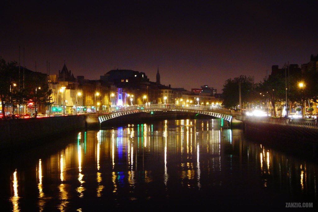 JUNE 2005 – Nightly view of the Ha’lf’penny Bridge and the River Liffey in Dublin, Ireland. © Mark Zanzig/zanzig.com