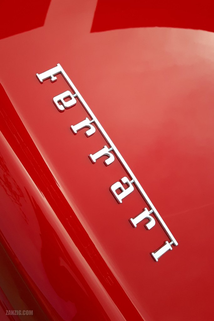 JUNE 2023 – The Ferrari wordmark is shown on the bright red Ferrari. Photo © Mark Zanzig/zanzig.com