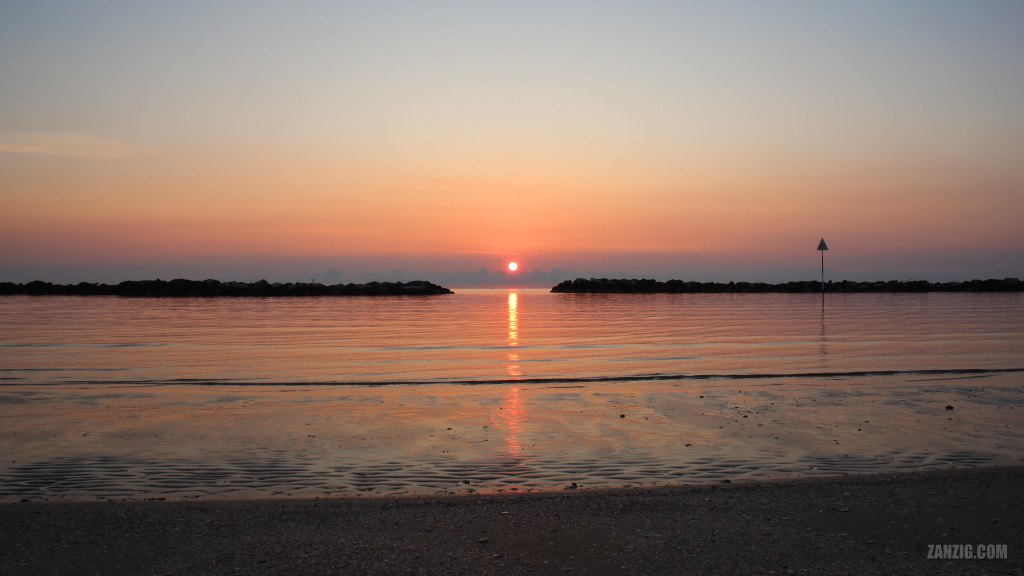 JUNE 2023 – Sunrise at Bellaria-Igea Marina near Rimini, Italy. Photo © Mark Zanzig/zanzig.com