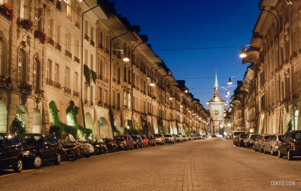 2004 – The Zytgloggeturm in Berne, Switzerland, seen from the Kramgasse during the blue hour. © Mark Zanzig/zanzig.com