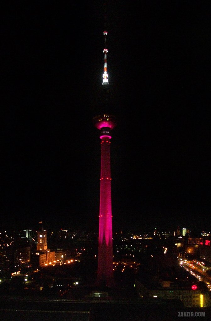 Here is an older photo from 2001 that shows the TV Tower of Berlin at night. The location was pretty unique – a hotel room on the 15th floor at the hotel that is now called Park Inn by Radisson Berlin Alexanderplatz.