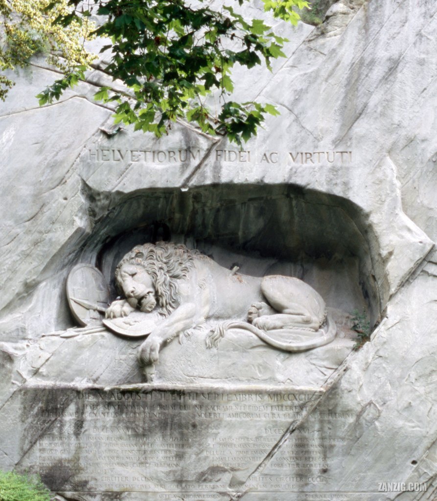 2004 – The Lion Memorial in Luzern in Switzerland shows a dying lion carved into the rock in honor of the war heroes who fell in the Tuileries in 1792. © Mark Zanzig/zanzig.com