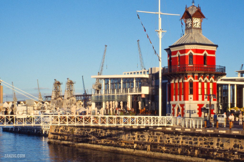 This photo is a good example. We were walking along the Victoria & Alfred Waterfront (V&A) which is a working harbour and a shopping/entertainment center at the same time. Here, Cape Town presents itself truly from its best side. The sunset was approaching in the late afternoon, and we gazed at the historical Clock Tower. As expected, the sun turned into a mighty orange and dipped the entire scene into the warmest light you can imagine. One might think, the warm tones have been added later, but the original slide looks exactly like this.