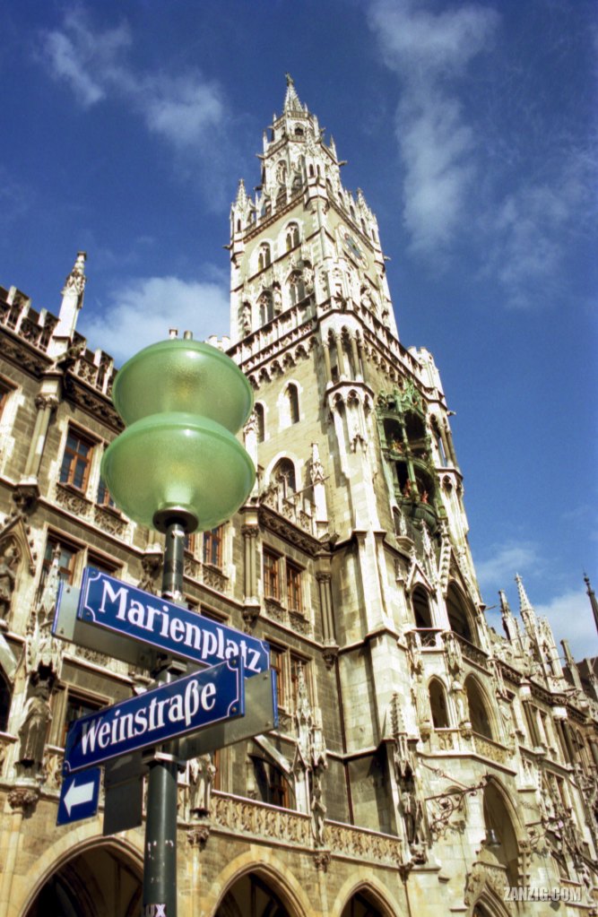 1998 – The iconic town hall of Munich, Germany, located in the town center at the Marienplatz. Photo © by Mark Zanzig/zanzig.com