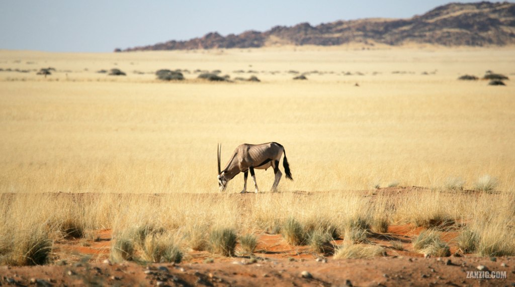 DECEMBER 2006 – An Oryx antelope grazes in the steppe near Sesriem, Namibia. Photo © Mark Zanzig/zanzig.com