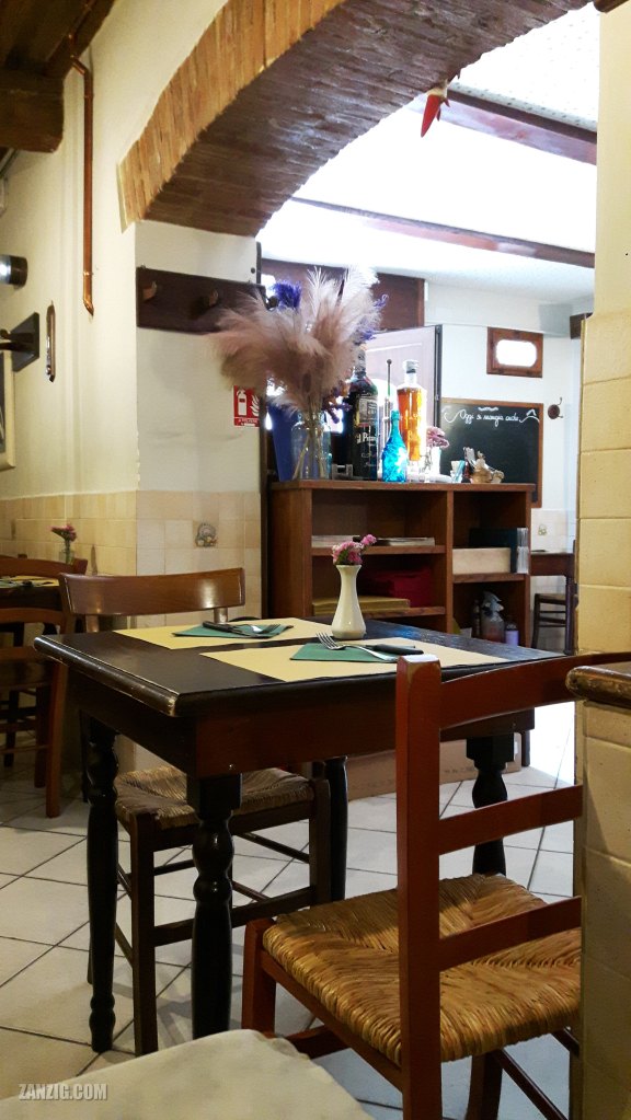 The osteria Il Pizzaiuolo in Florence, Italy, is such a place. Situated off the city center next to the Mercato di Sant’Ambrogio, it is already off the beaten tourist track already, and thanks to its narrow, historic entrance door it can be easily overlooked. In former times the restaurant catered for the merchants and workers of the market as well as the people who lived in the quarter. Today, some tourists find their way, too, but when we stopped by, there were mostly local guests. The food was excellent, and the value for money was much higher than in the city center.