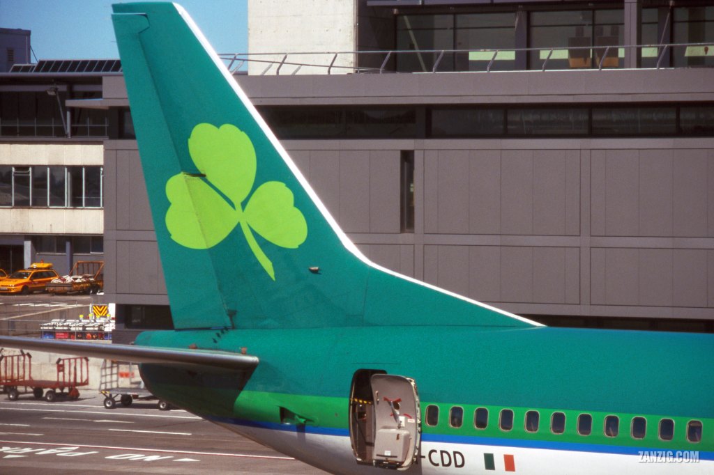 We were early at the airport, and there it was: the colorful aft section of an Aer Lingus plane. It carried the registration EI-CDD, a Boeing 737-500 which belonged to the airline since 1991. The back door was wide open to get in some fresh air.